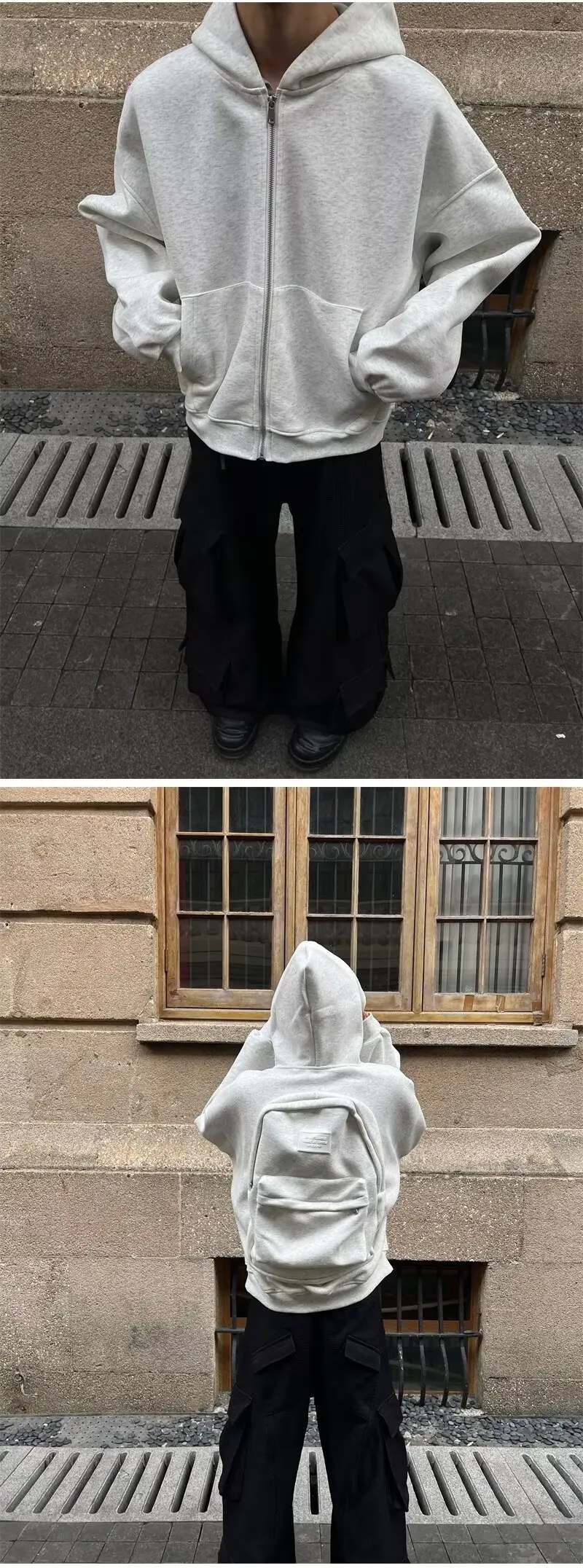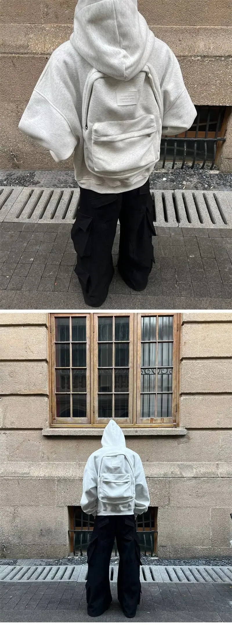 This American-style backpack sweater features a unique one-piece design, offering a trendy and stylish look for the fashion-conscious.
